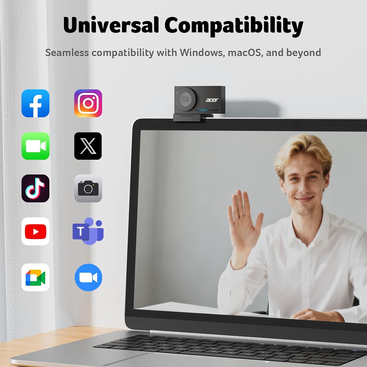 [4K Premium Image Quality] With UHD 4K resolution and a large Sony 1/2" CMOS sensor, this acer webcam for pc delivers balanced, true-to-life visuals with HDR, exceptional low-light performance, and superior light capture for clearer, brighter, detail-rich,idea for streamers, gamers, and creators, this 4K webcame delivers an exceptional experience for you and your audience.