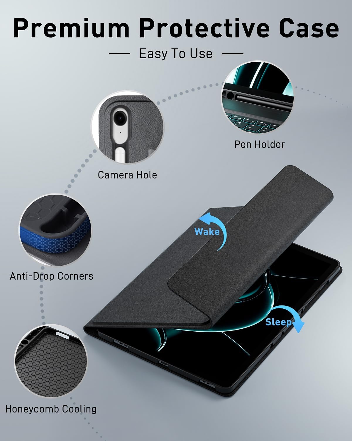 Case Keyboard for Samsung Galaxy Tab S11 Ultra / S10 Ultra / S9 Ultra / S8 Ultra 14.6 inch Cover - 7 Color Rainbow Change Backlit Detachable Magnetic Keyboard with S Pen Holder with Mouse - Black