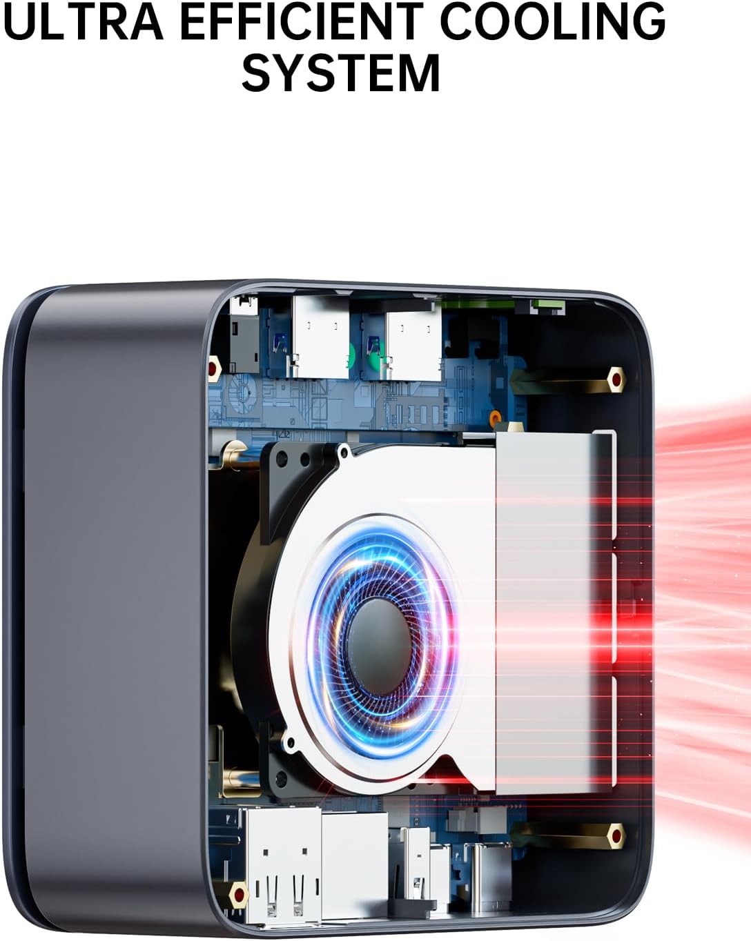 COMPACT SIZE, FULL I/O, NEXT-GEN WIRELESS --- Palm-sized mini desktop comes packed with dual USB 3.2 Gen1, USB 2.0, USB-C (Full-Function: PD/DP/Data), DisplayPort, HDMI, and 3.5mm audio jack. Stay connected with WiFi 5 + Bluetooth 5.2. Great for office desks, minimalist setups, or VESA mounting.