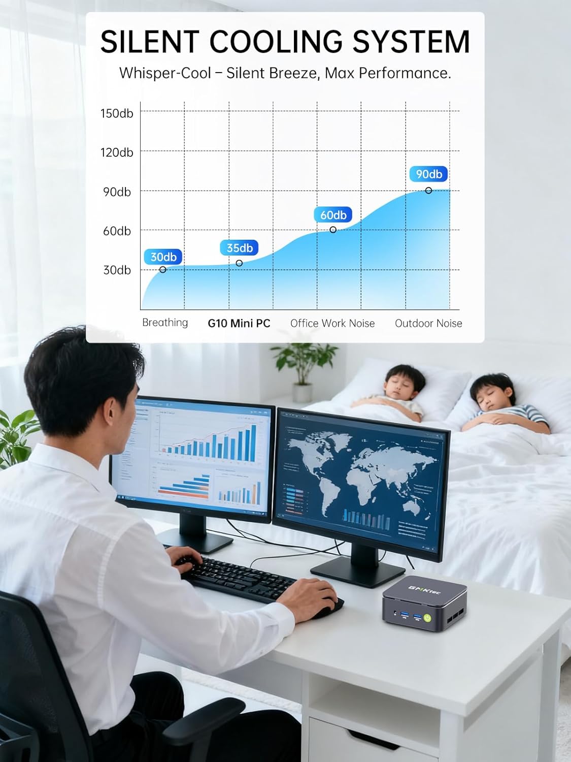POWERFUL OFFICE & LIGHT GAMING MINI PC --- The GMKtec NucBox G10 features the AMD Ryzen 5 3500U (4C/8T, up to 3.7GHz) with Radeon Vega 8 Graphics up to 1200MHz. Built on Zen+ 12nm architecture, it delivers 35% faster performance than Intel N150/N100 series chips, making it ideal for light gaming, video playback, home office, and multitasking workstations.