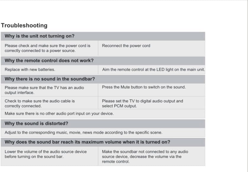 ✔️【Usage Tips】If the soundbar does not power on, try connecting it to the TV with an optical cable. For older TV models, we also recommend using the optical connection. See the manual for details. When using Bluetooth, please keep the device and speaker within 10 meters of each other