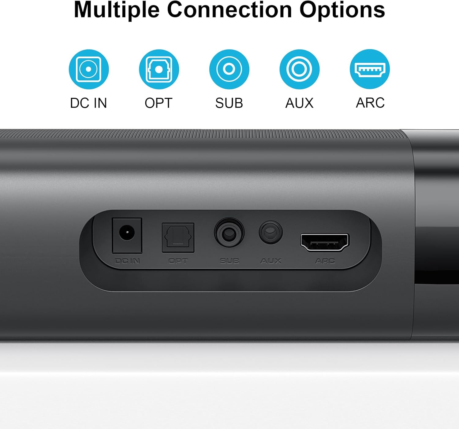 ใ๐๐๐๐จ๐ซ๐ญ๐ฅ๐๐ฌ๐ฌ ๐๐ฌ๐ใ: Enjoy seamless Bluetooth 5.0 and reliable ARC, OPT, and AUX connections. In ARC mode, control your soundbar with TV remote. Note: Must use TV remote to select TV connection, then set TV audio output format to PCM.(TV settings are required to make sound bar and TV compatible).