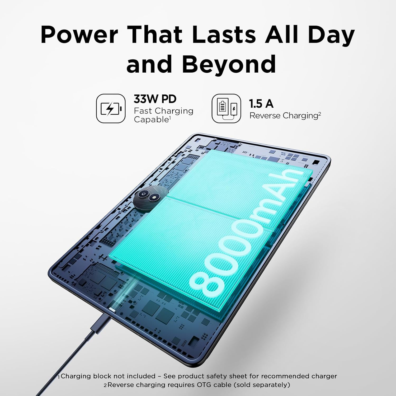 Long Battery Life with Reverse Charging: The TCL NXTPAPER 11 Plus features a large 8000mAh battery, providing reliable power for a full day of studying, working, and entertainment. With 33W PD fast charging, it quickly recharges, reducing your wait time. Need to help a low-battery phone or earbuds? Simply plug in—1.5A reverse charging turns your Android tablet into a portable power source
