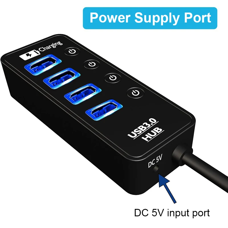 Super Speed Data: The USB 3.0 Hub extension provides up to 5 Gbps data speeds let you transfer an HD movie in seconds, backwards compatible with USB 2.0/1.1, powered USB 3.0 hub built-in 60cm long USB cable
